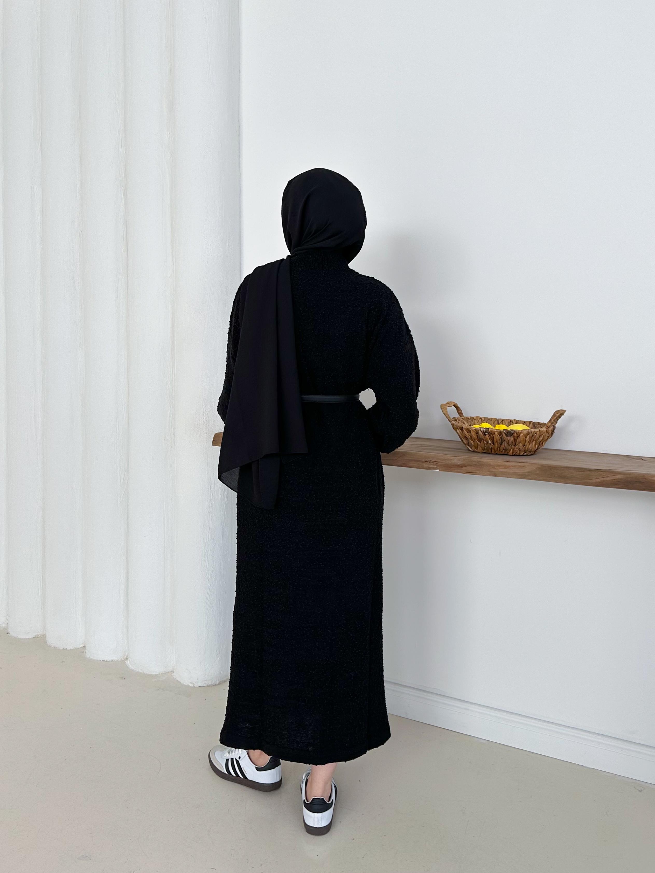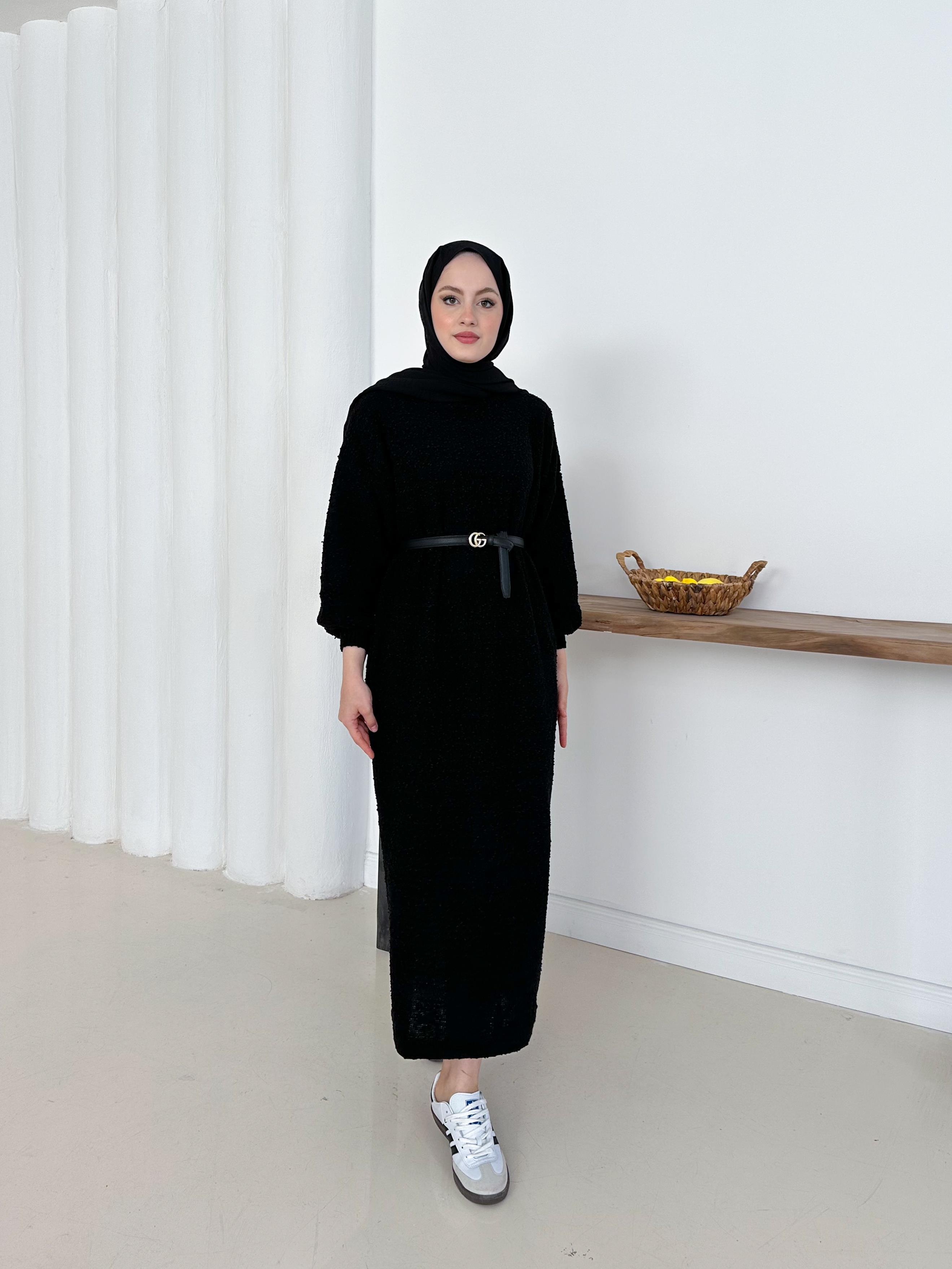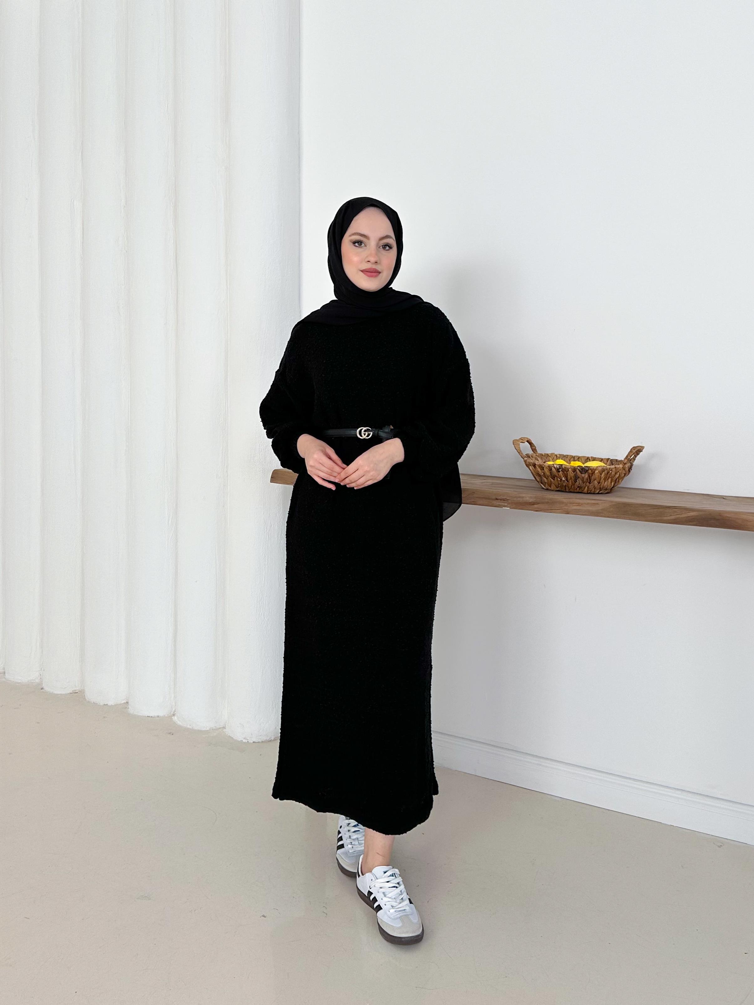 ✨🧵 Özenle örülmüş böcek ip triko elbise 🌿 Pamuklu dokusu ile rahat ve şık 👗 Uzun boy tasarımıyla zarif duruş 💫 Tüylenmez,ve konforlu kullanım