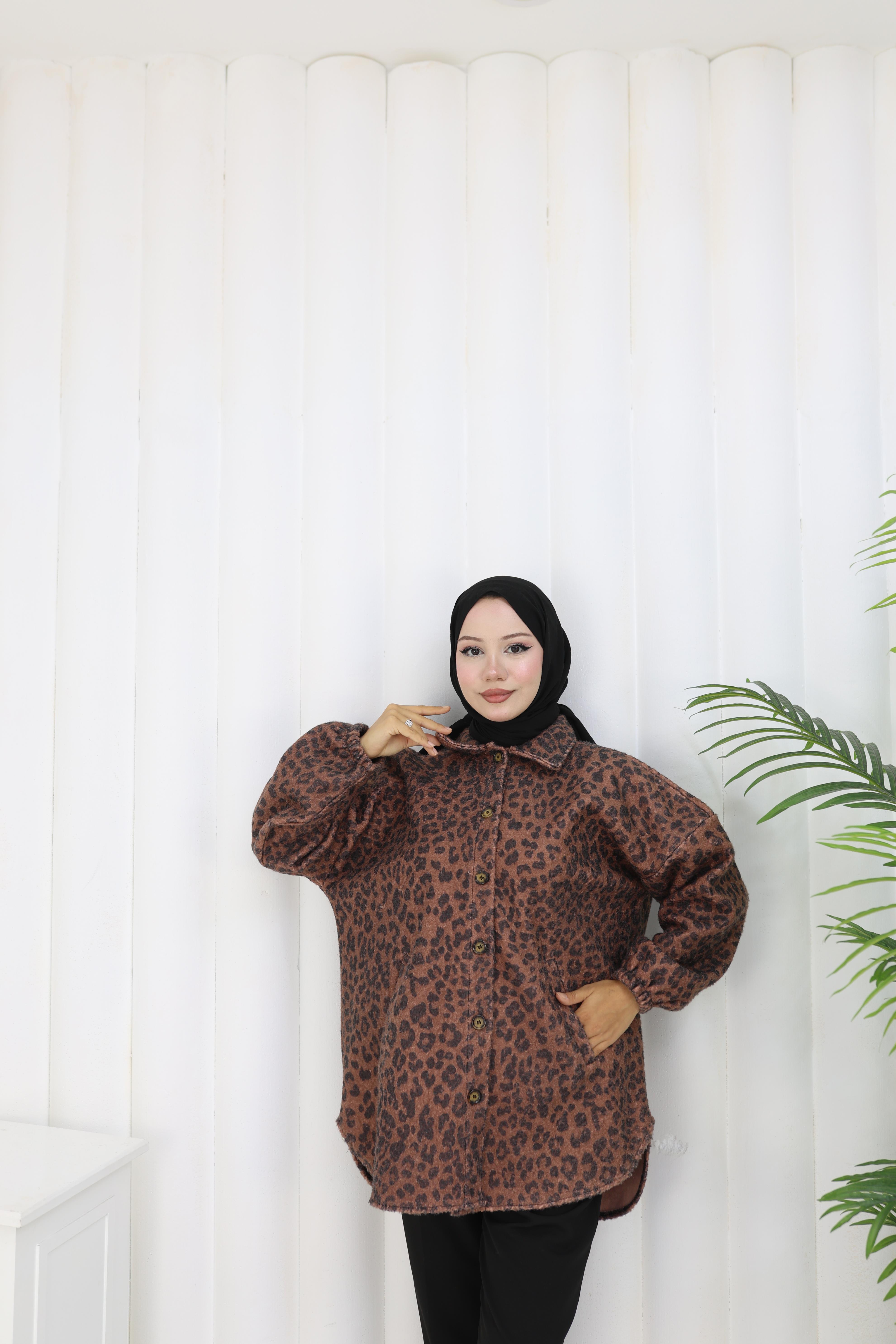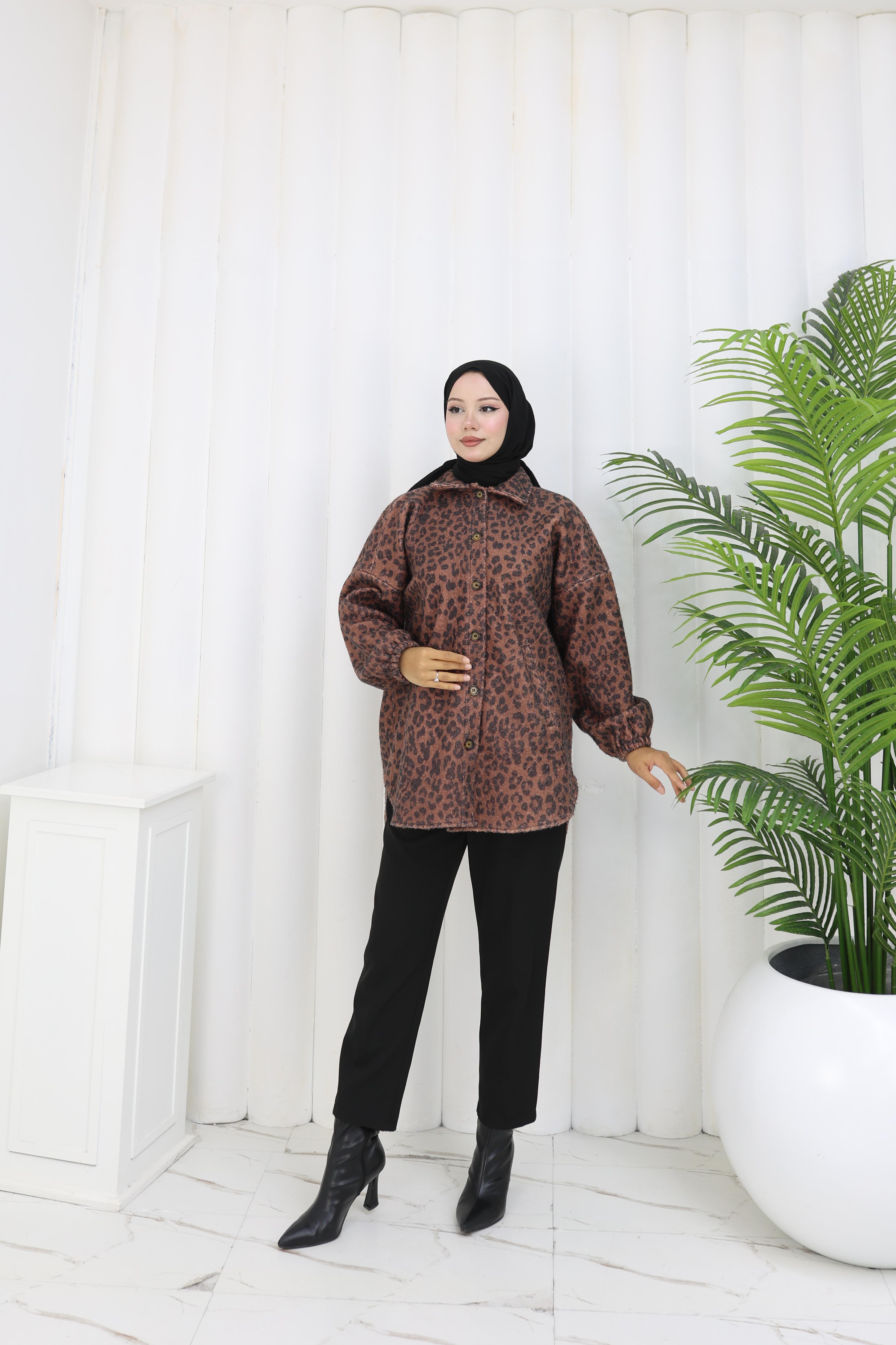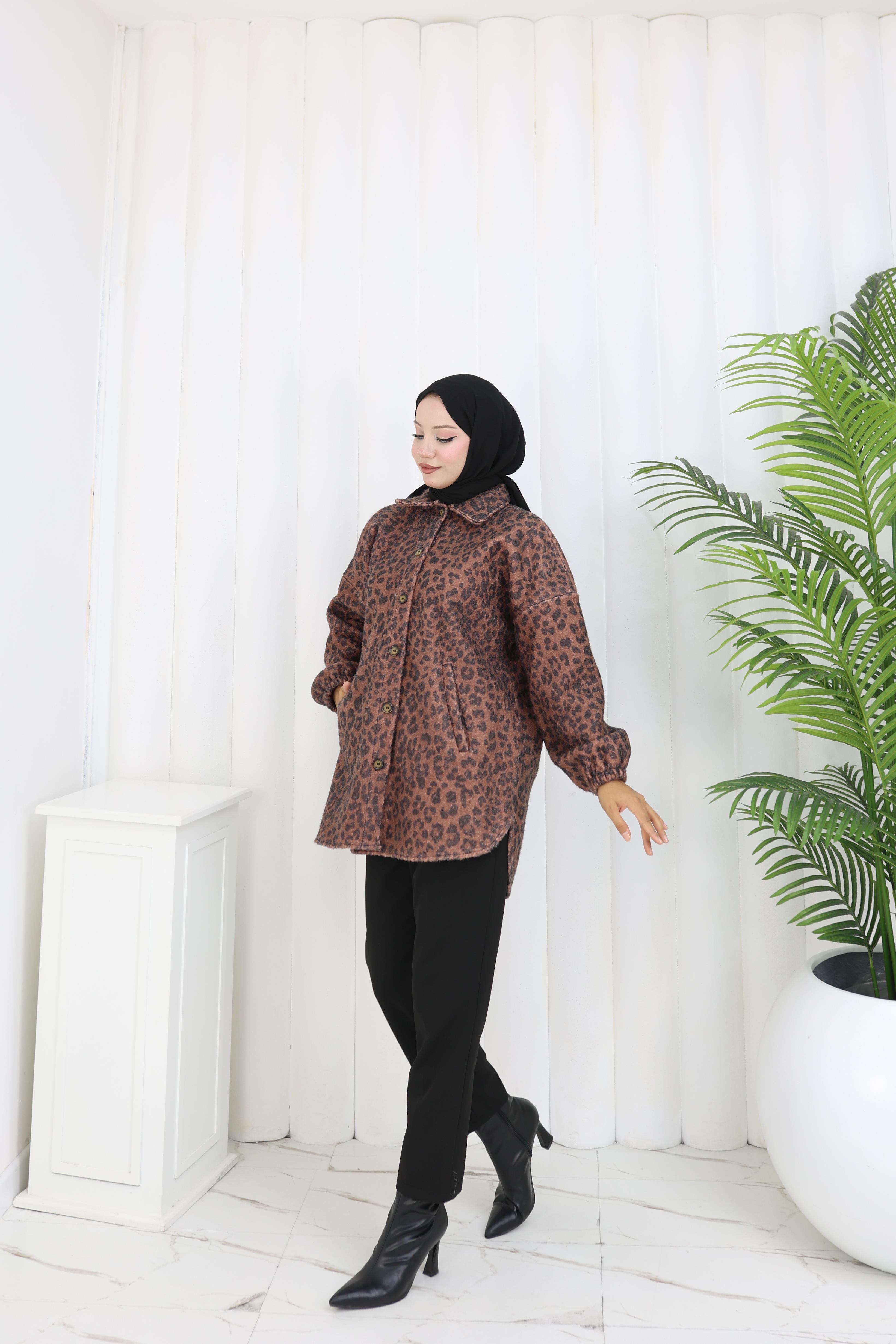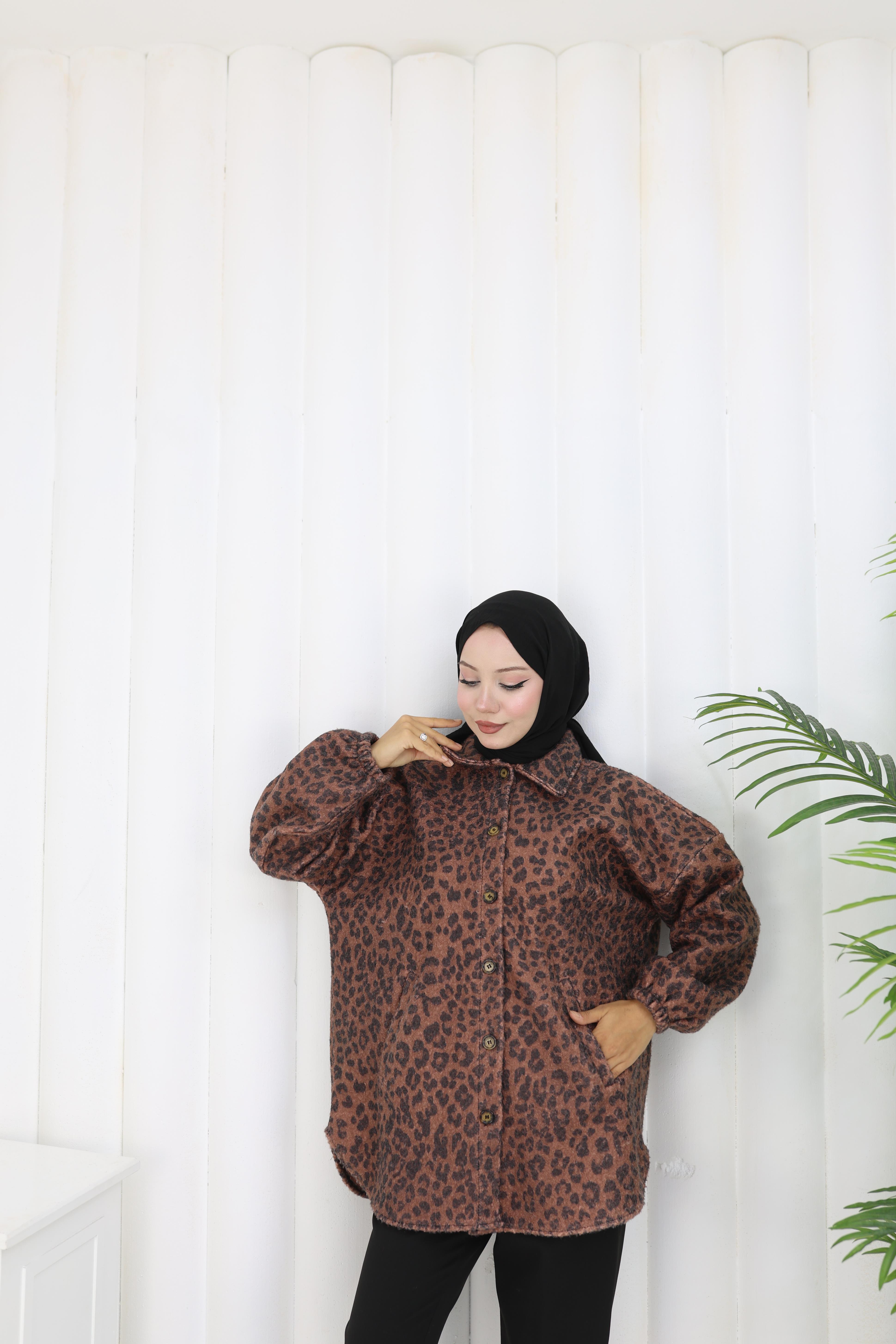 Leopar Dokunuş Kahverengi Buklet Ceket”