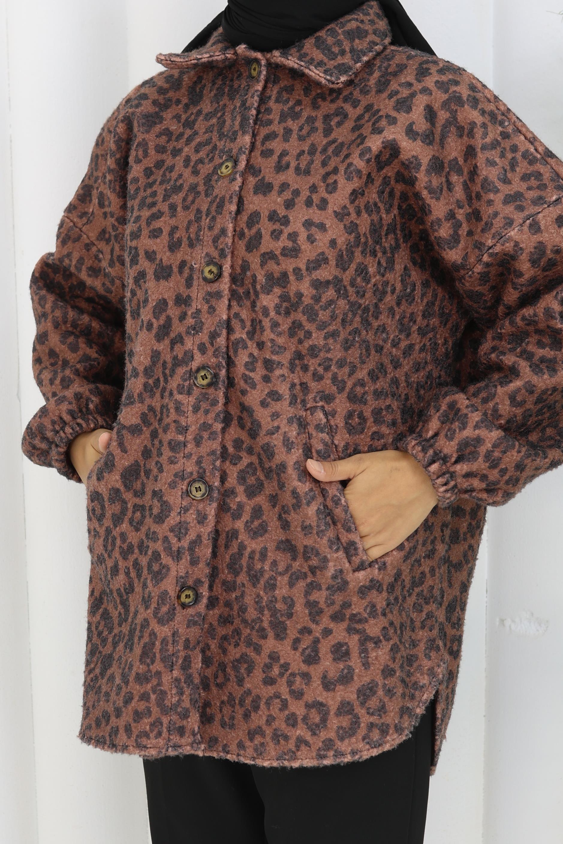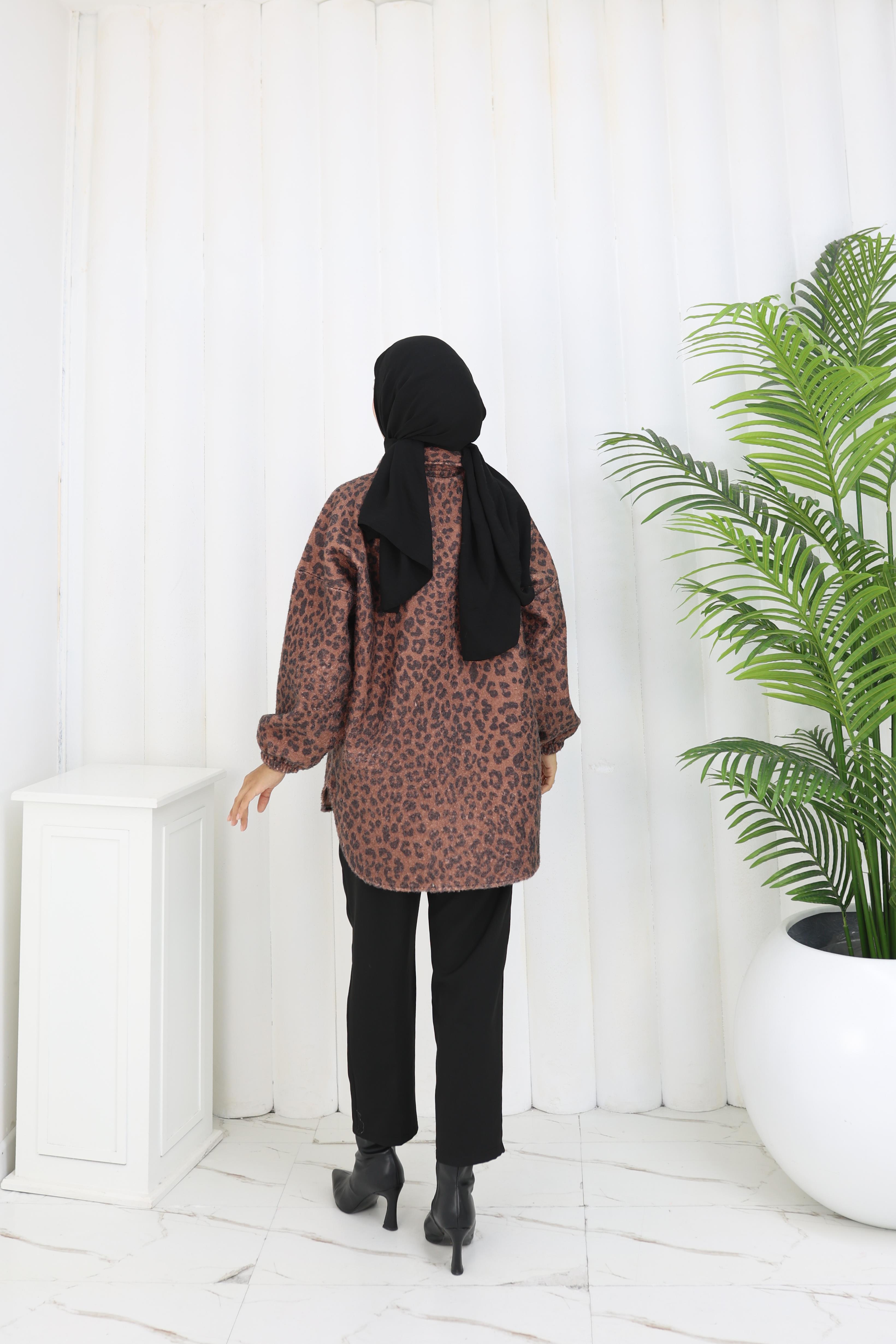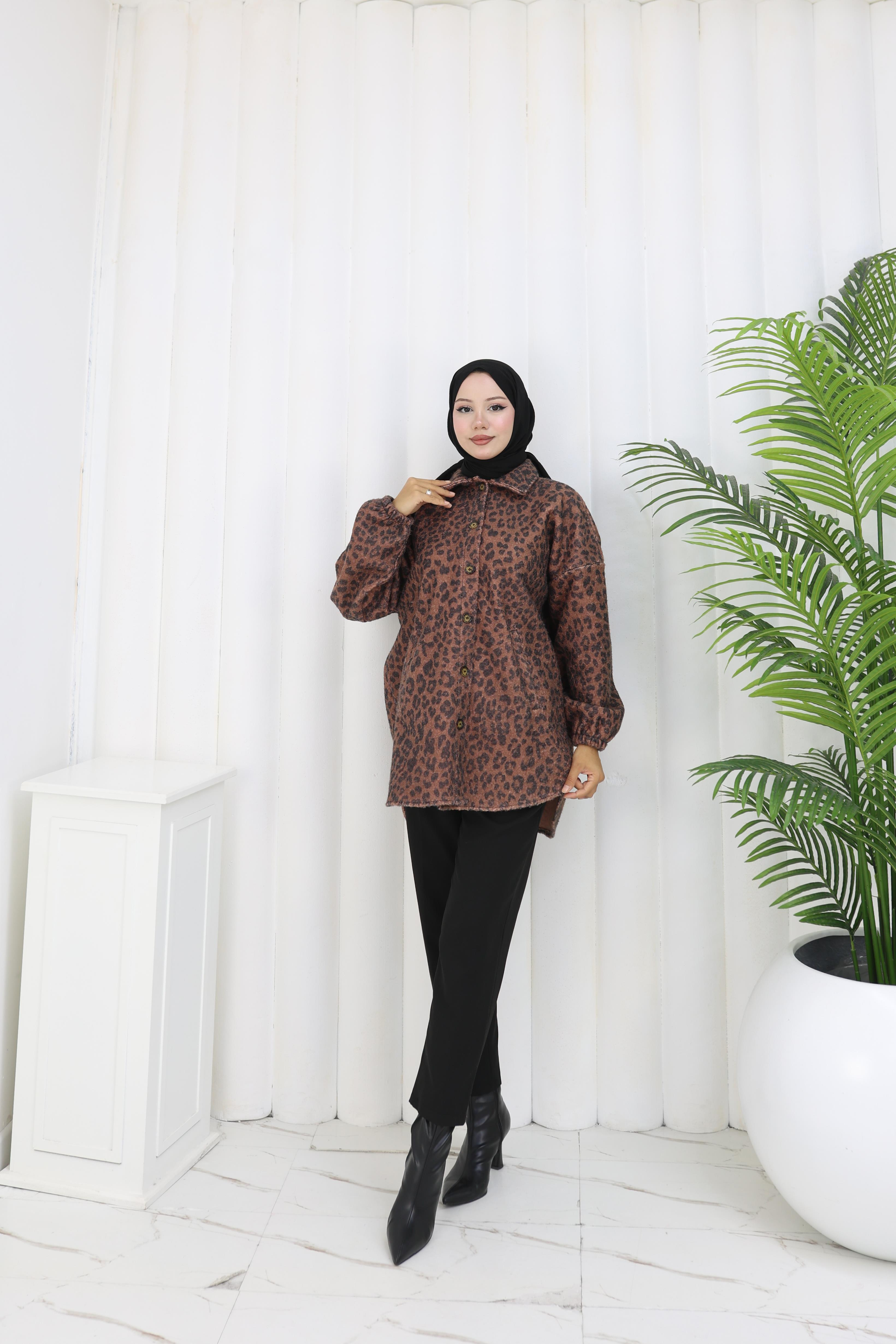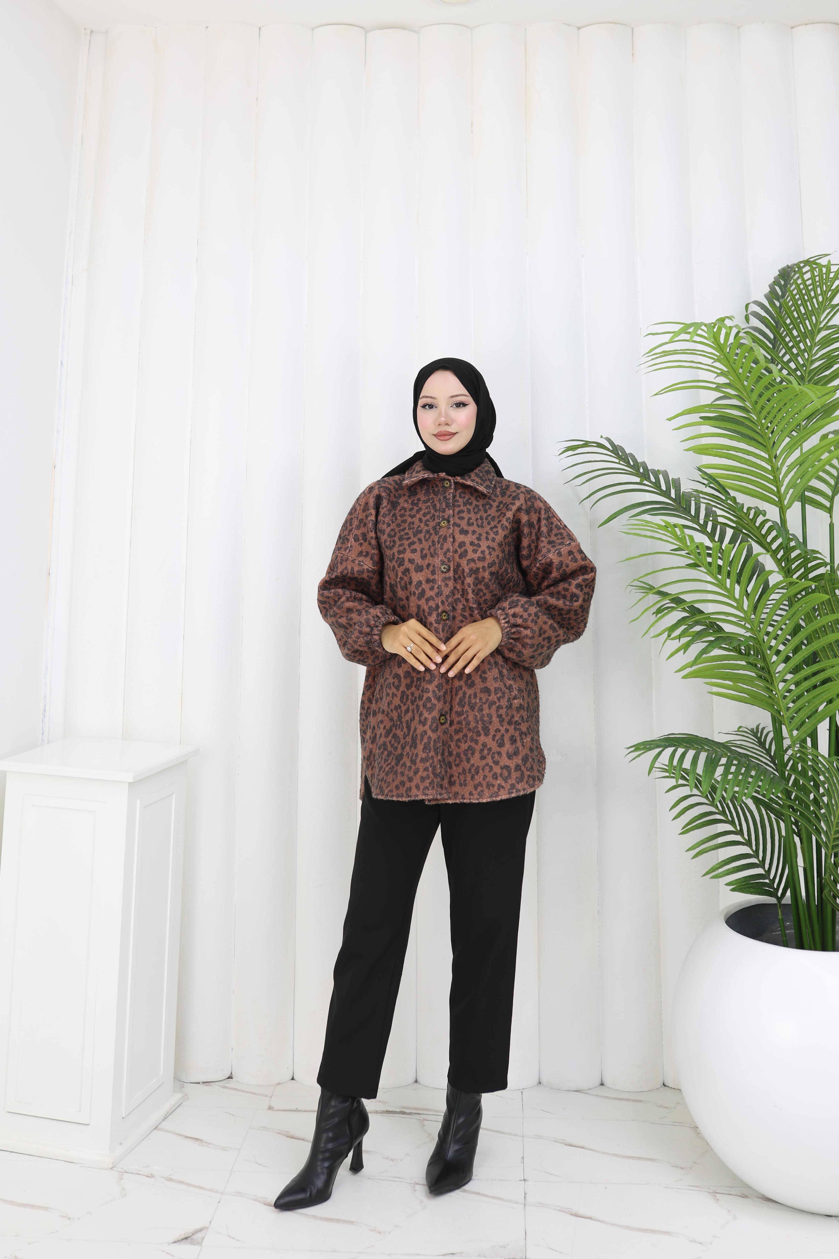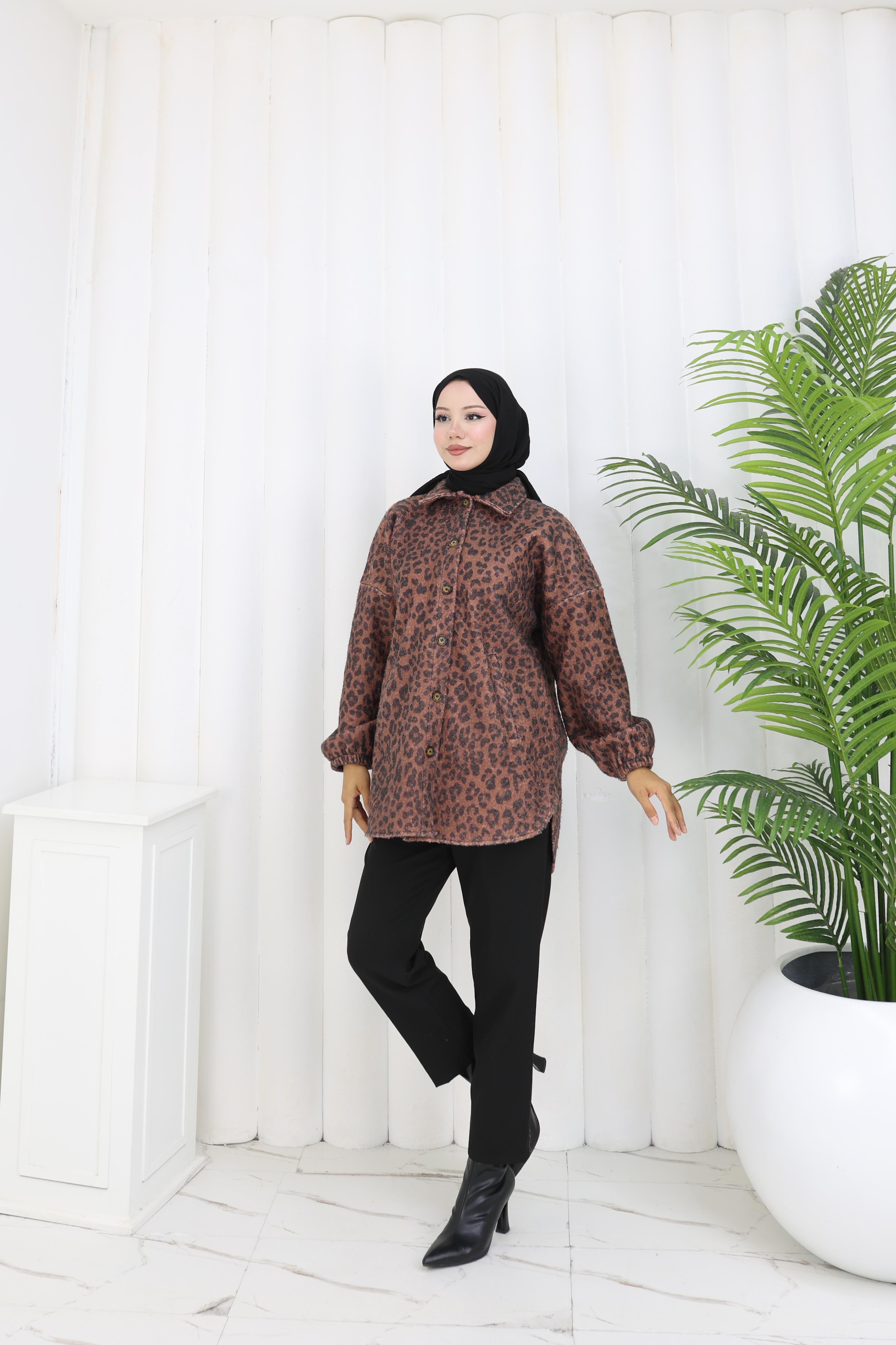Leopar Dokunuş Kahverengi Buklet Ceket”
