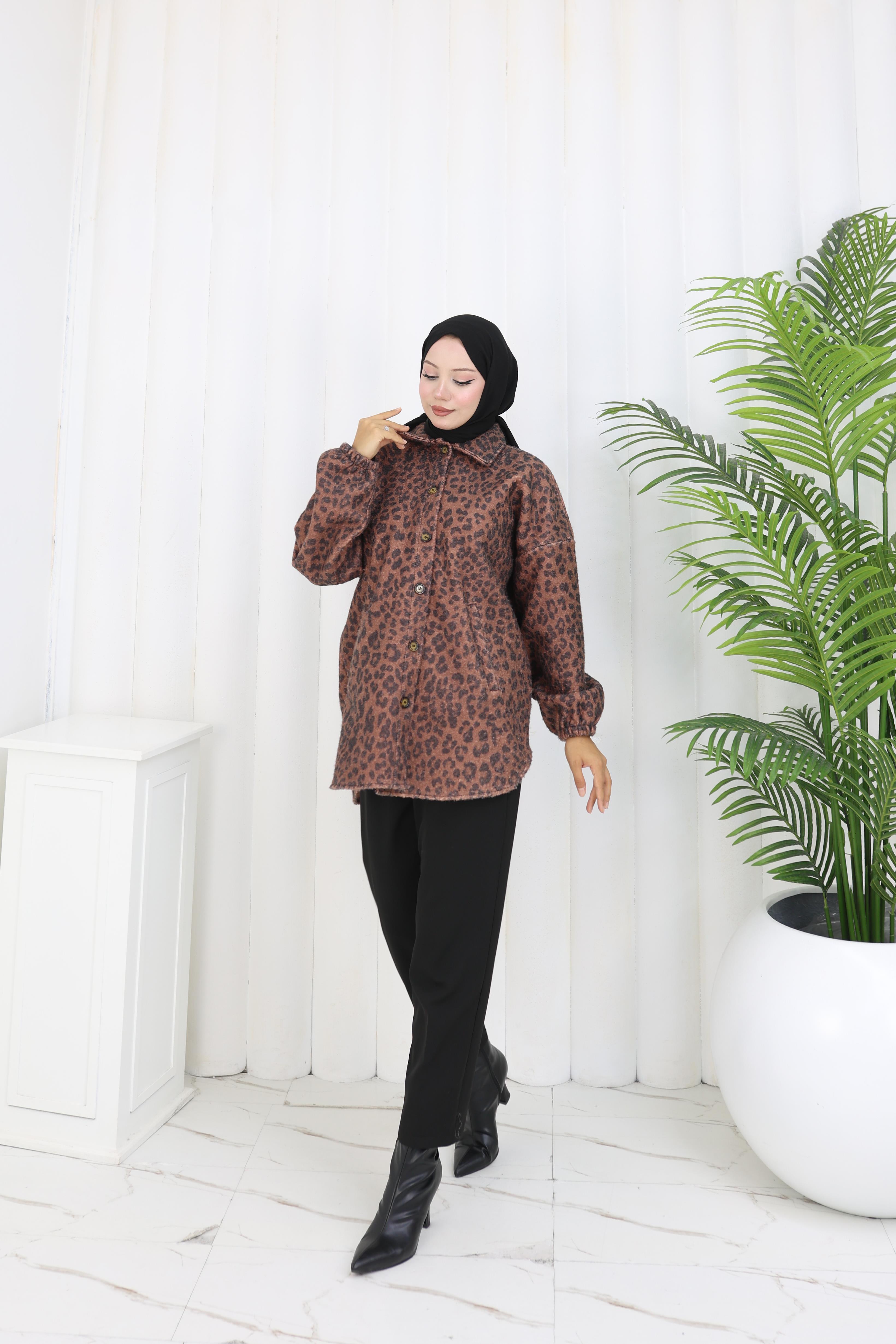 Yumuşak buklet kumaş, iddialı leopar desen 🐆 ve şık düğme detayları 🤍 ile her kombine enerji katacak ceket! 💫