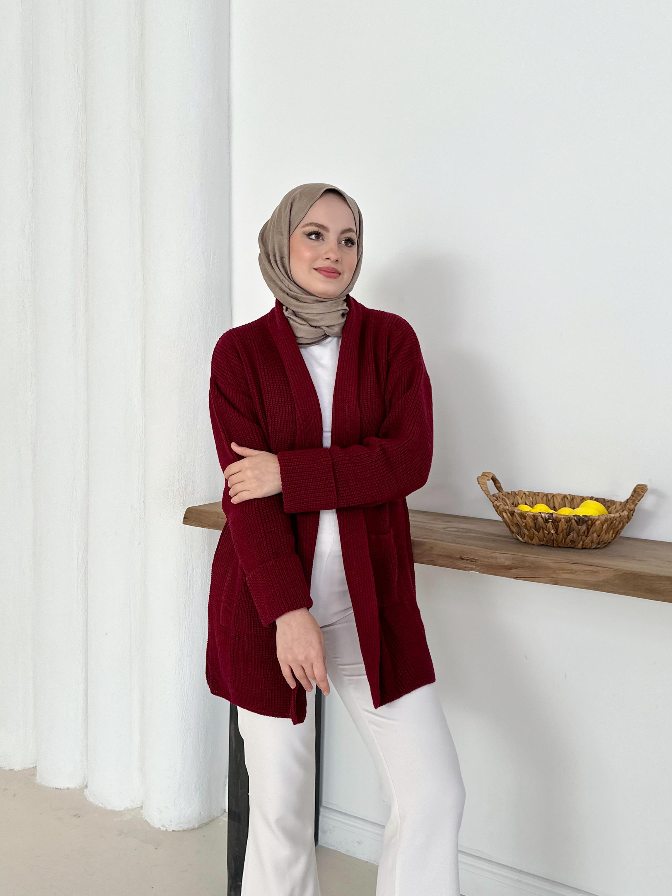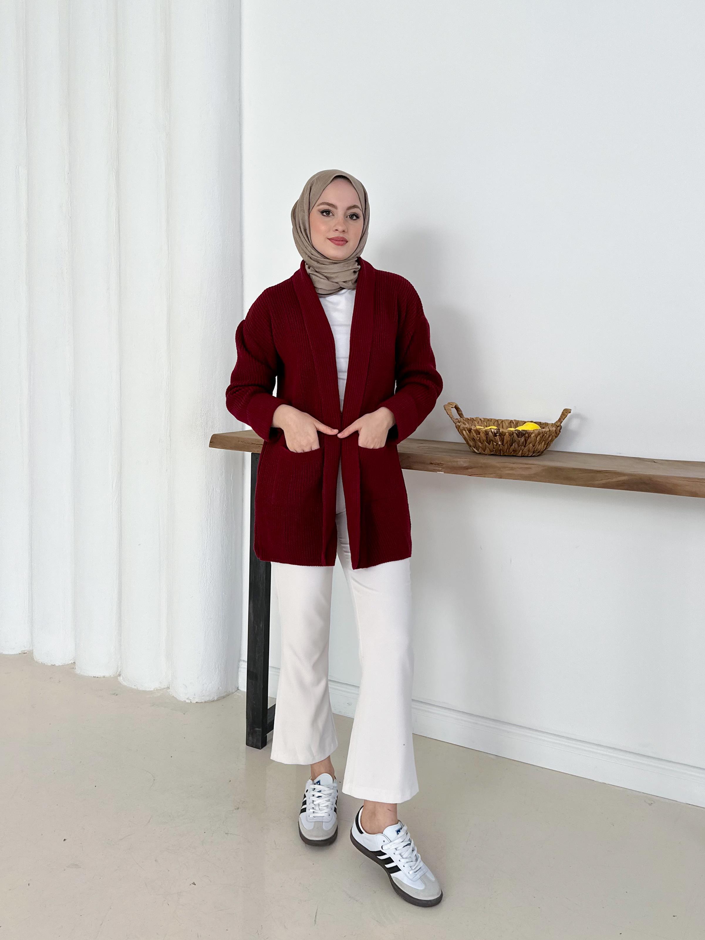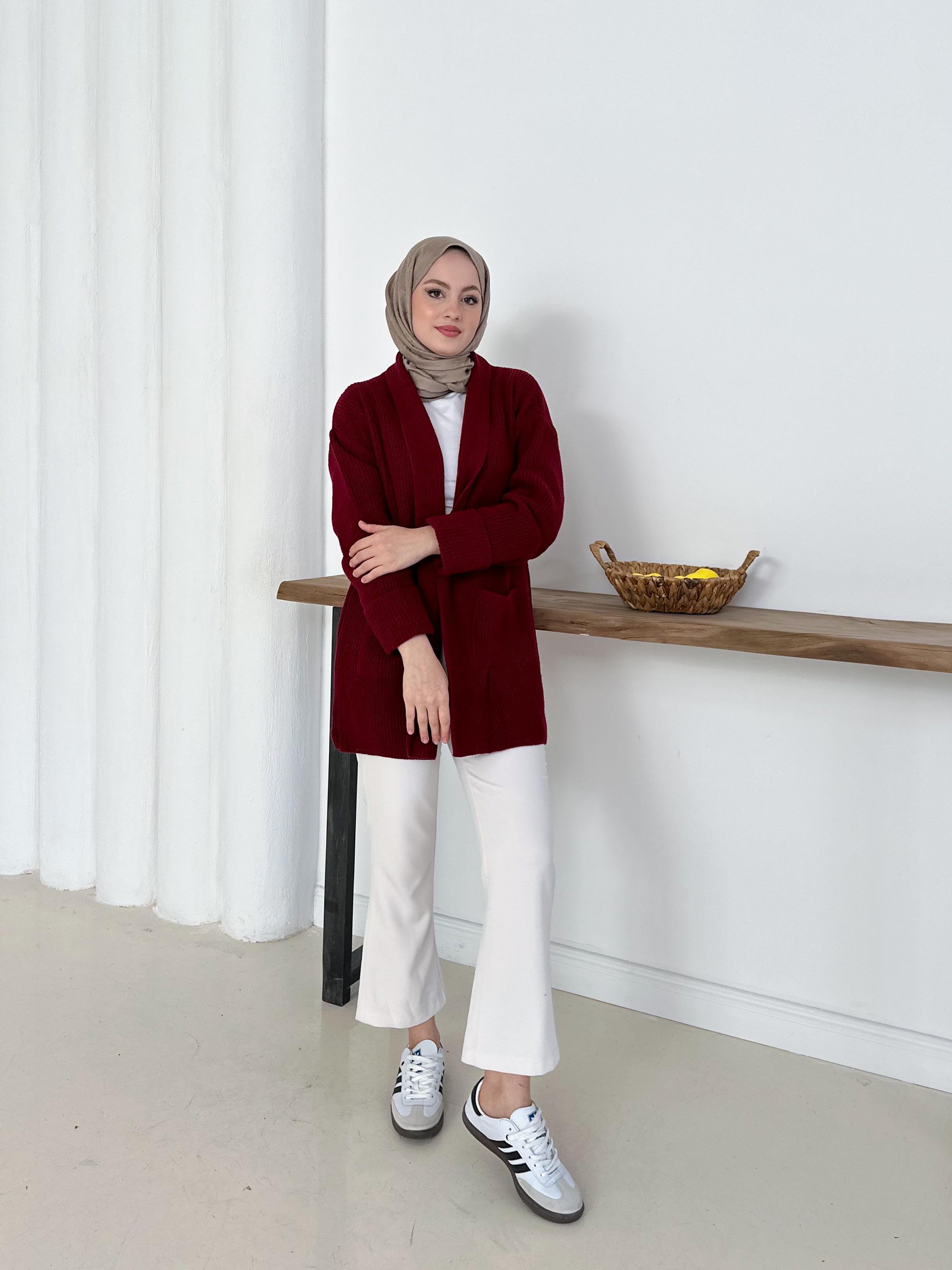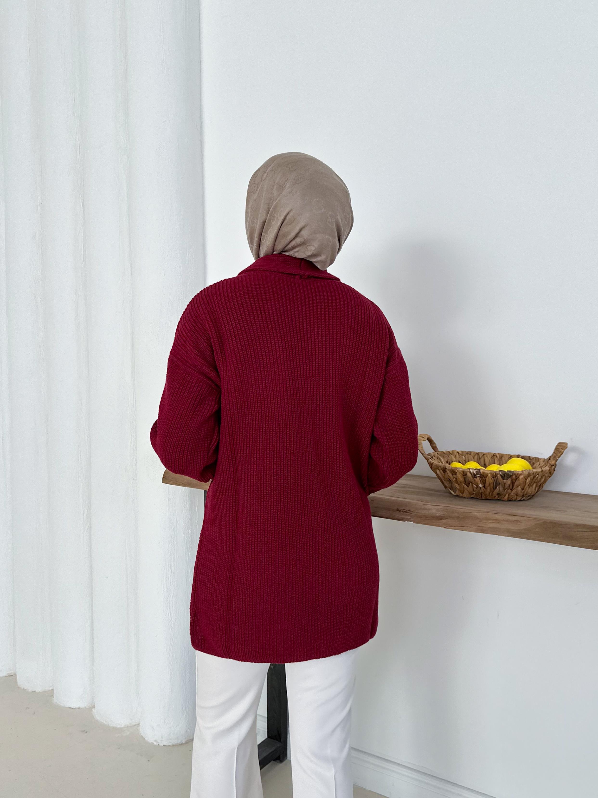 Şık & Rahat Düğmesiz Bordo Triko Hırka