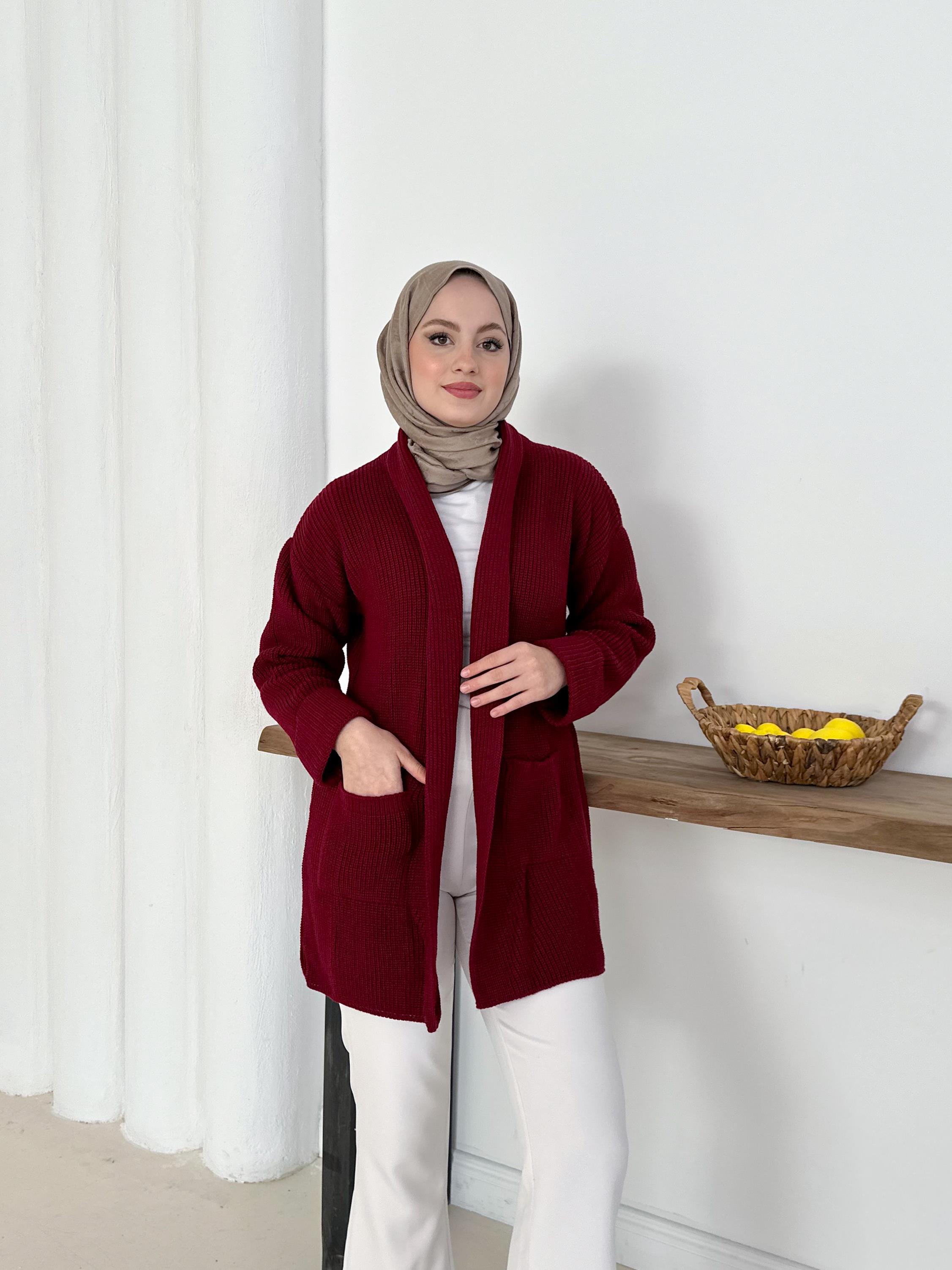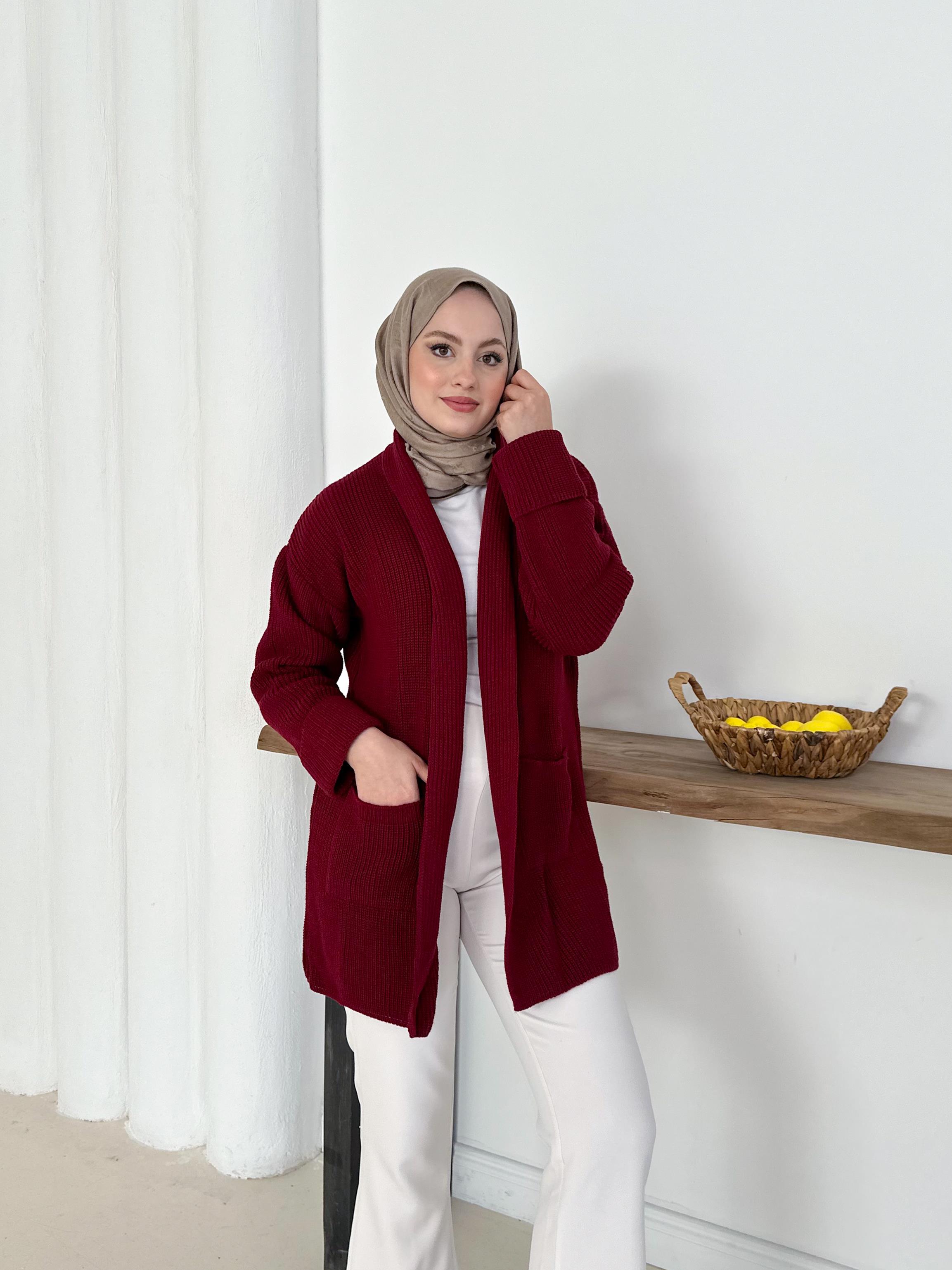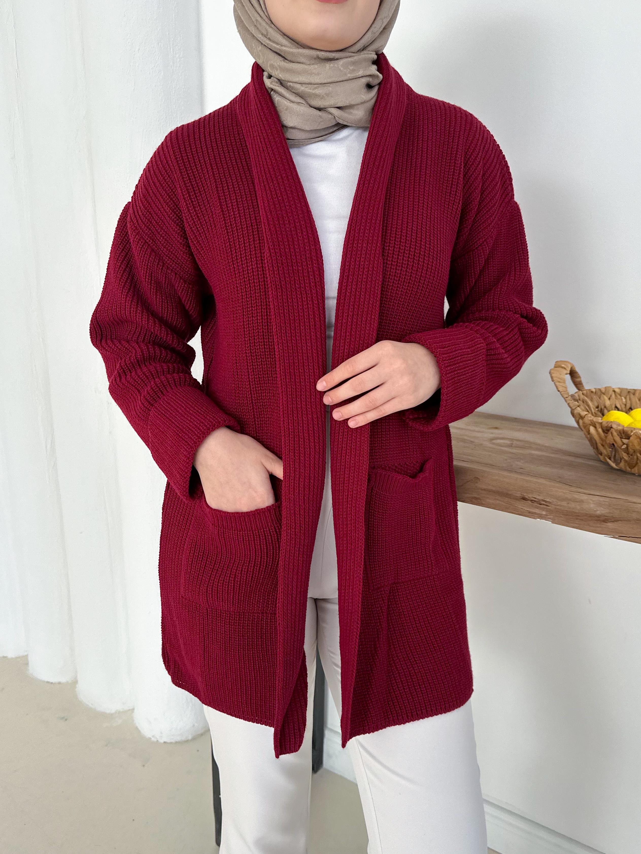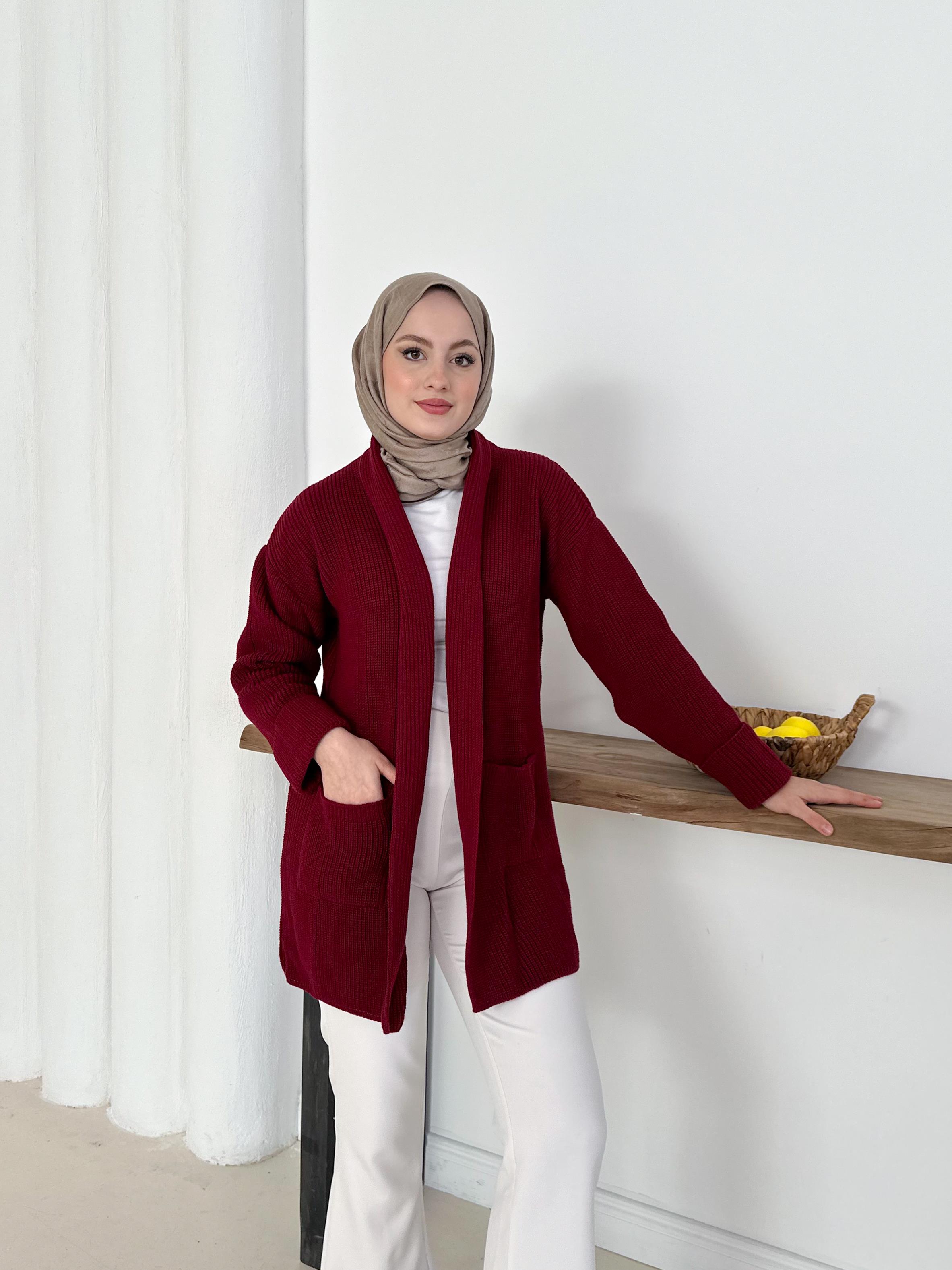 Şık & Rahat Düğmesiz Bordo Triko Hırka