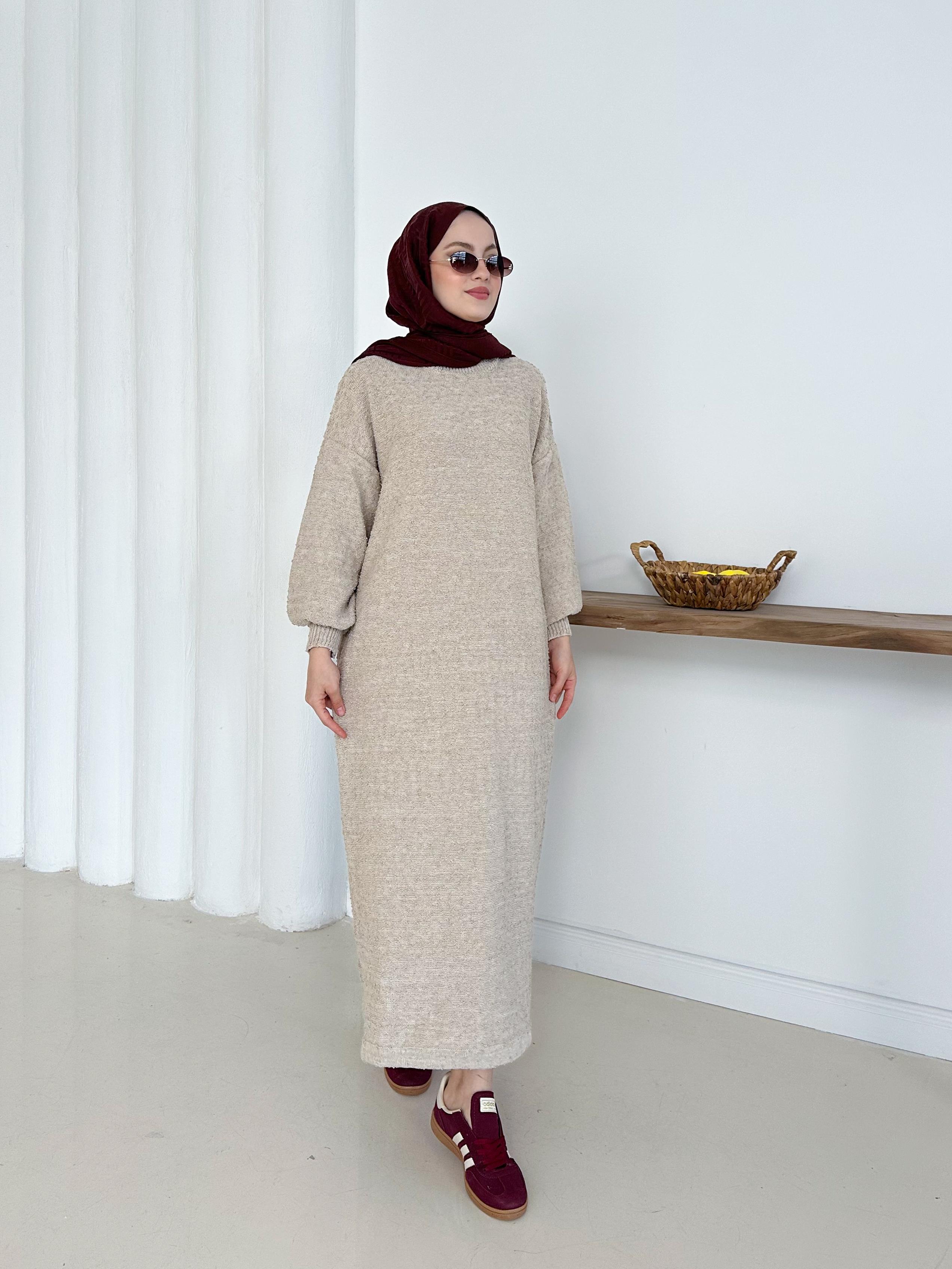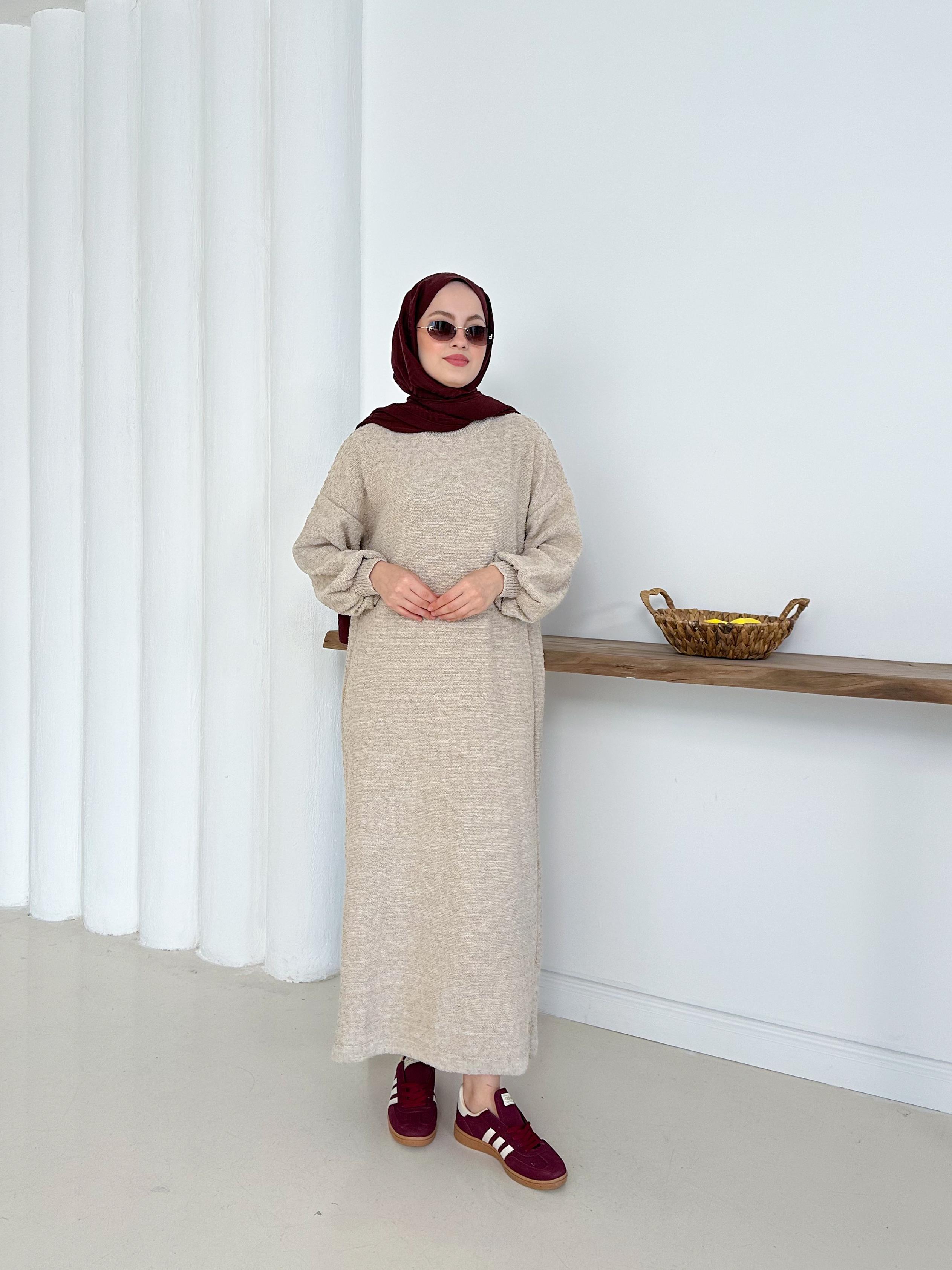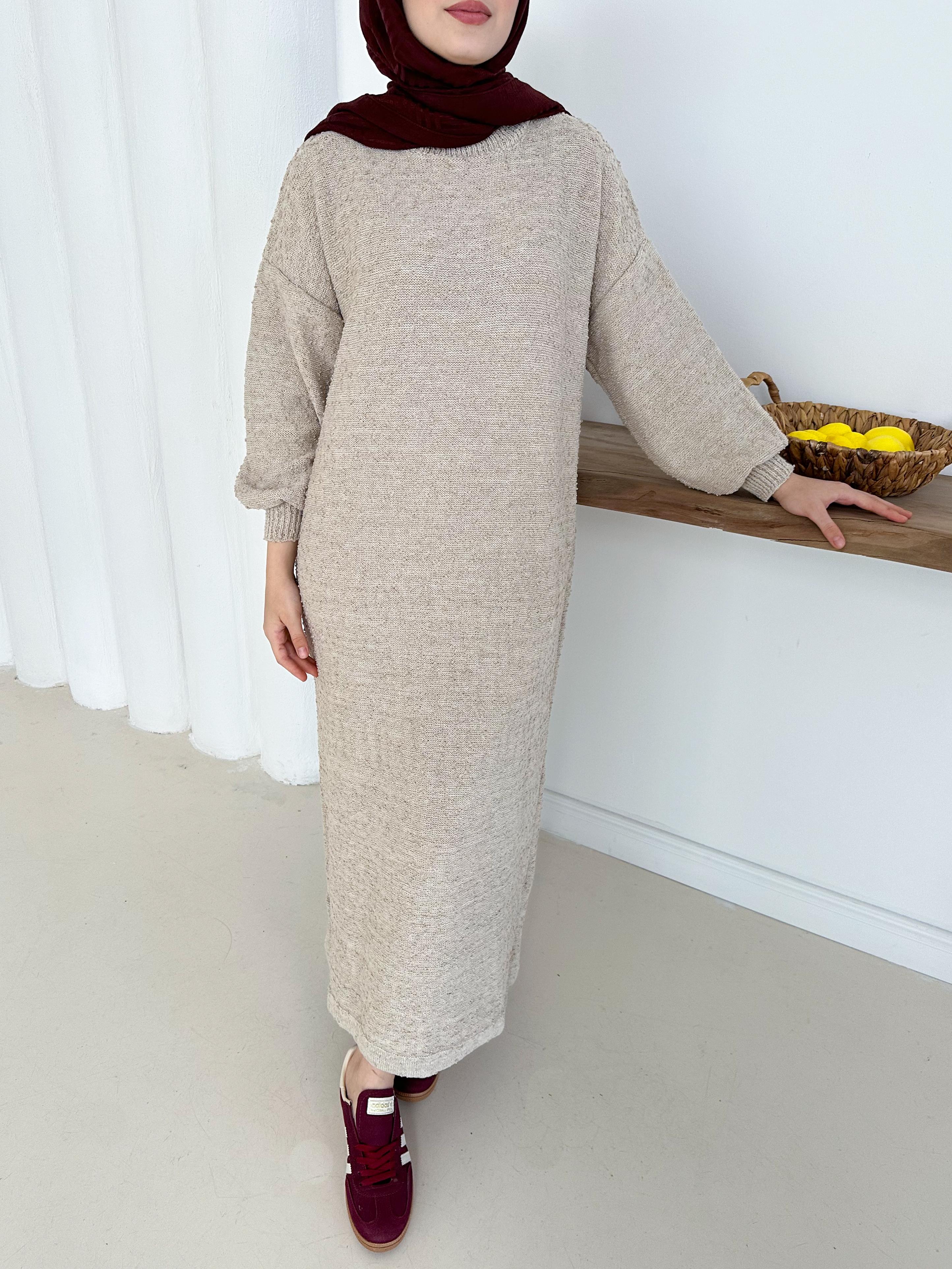✨🧵 Özenle örülmüş böcek ip triko elbise 🌿 Pamuklu dokusu ile rahat ve şık 👗 Uzun boy tasarımıyla zarif duruş 💫 Tüylenmez,ve konforlu kullanım