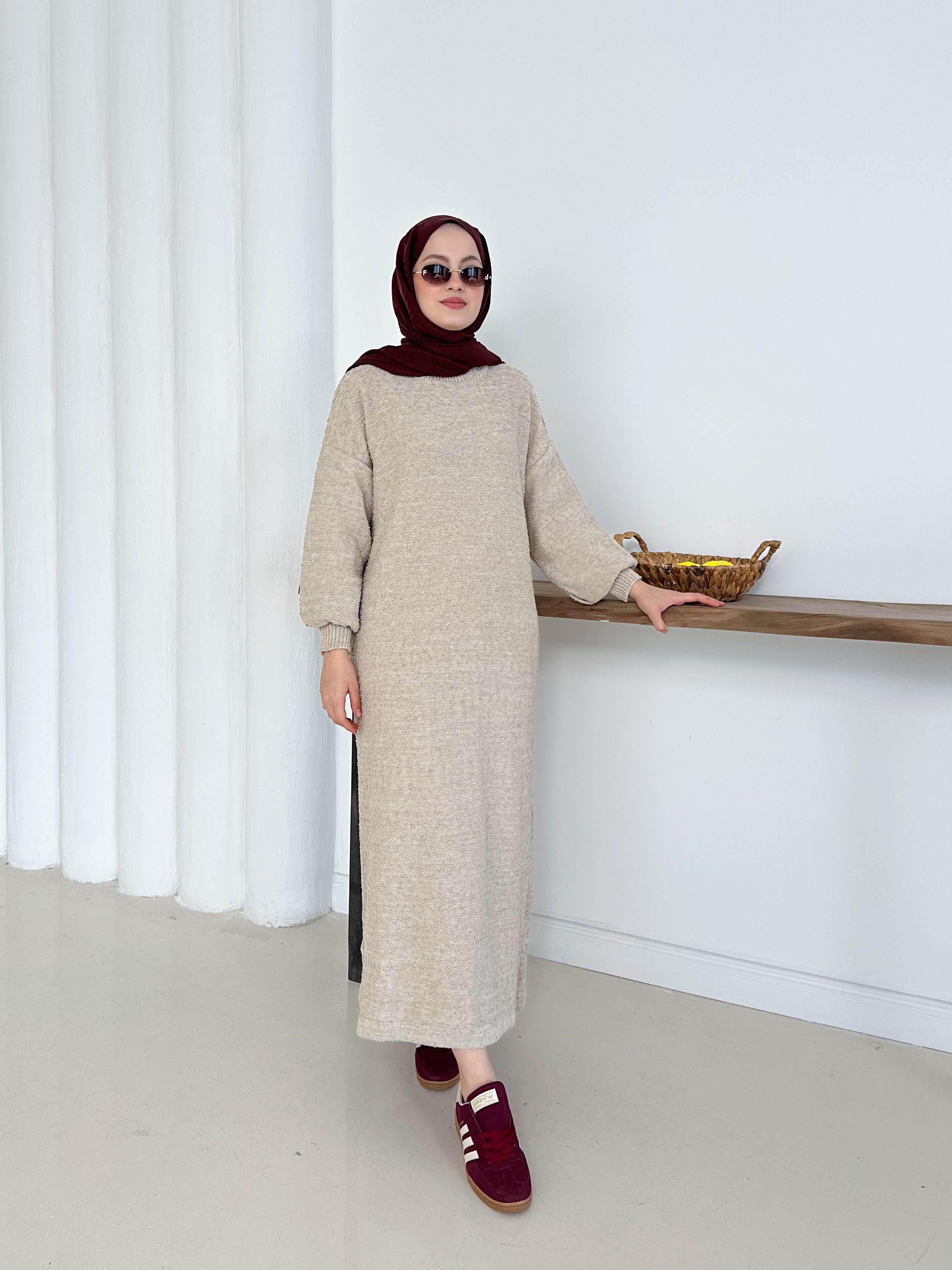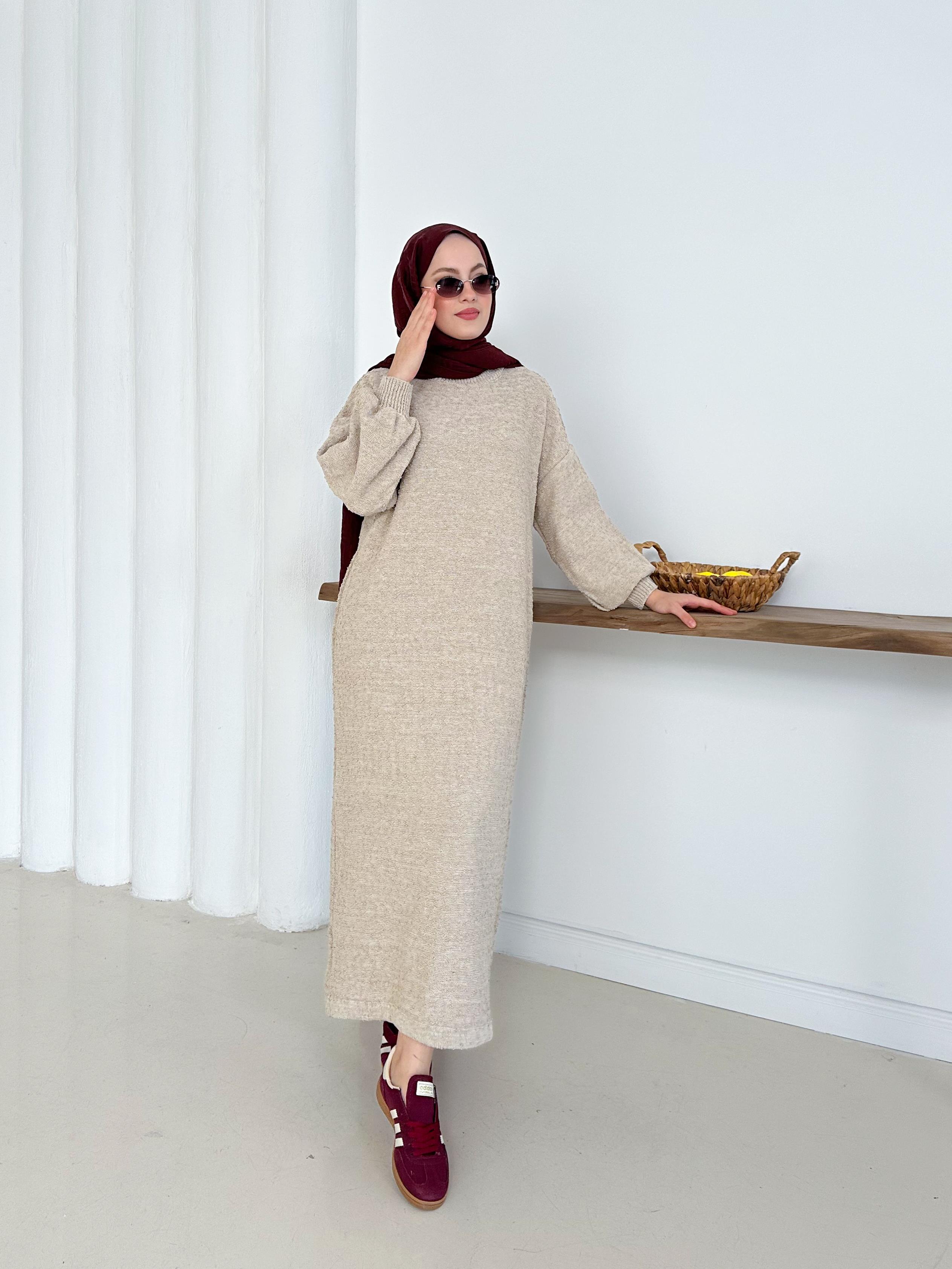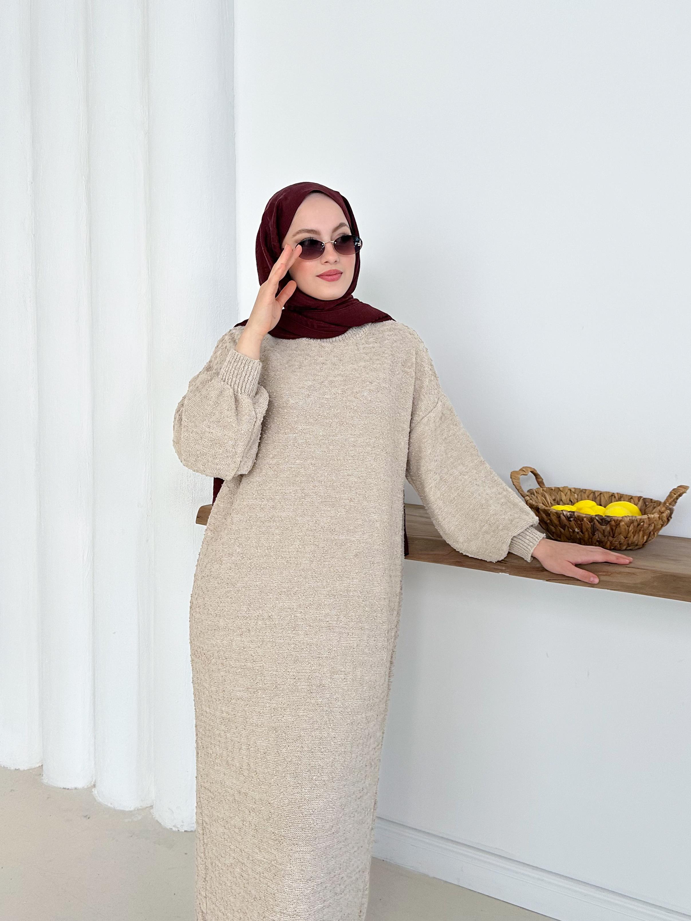 ✨🧵 Özenle örülmüş böcek ip triko elbise 🌿 Pamuklu dokusu ile rahat ve şık 👗 Uzun boy tasarımıyla zarif duruş 💫 Tüylenmez,ve konforlu kullanım